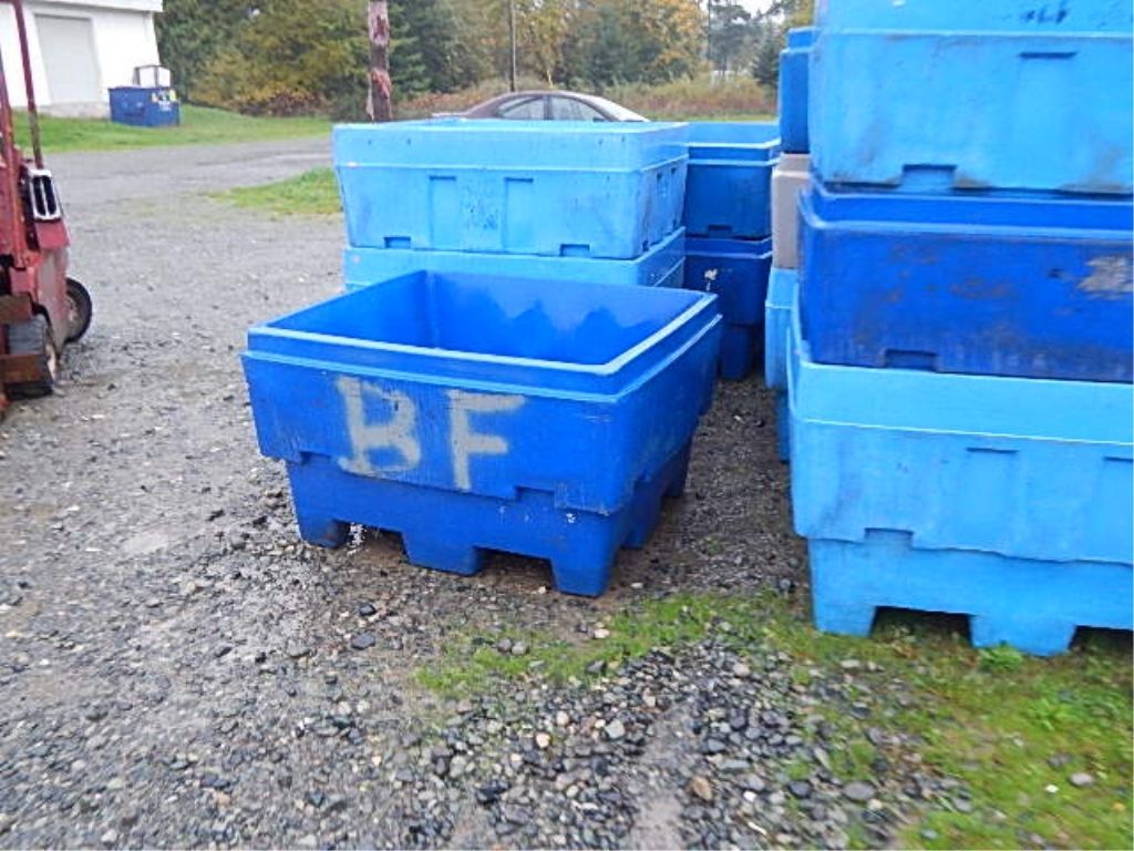 LARGE SQUARE BIN - PLASTIC - BLUE - WITH DRAIN HOLE AT BOTTOM - GREAT FOR RAISED GARDEN OR ???
