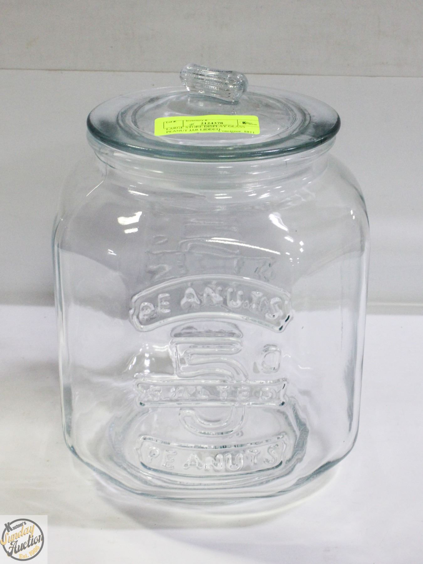 LARGE STORE DISPLAY GLASS PEANUT JAR LIDDED