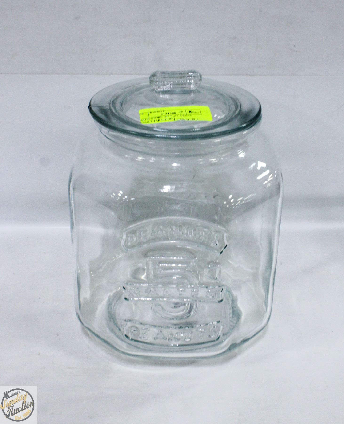 LARGE STORE DISPLAY GLASS PEANUT JAR LIDDED