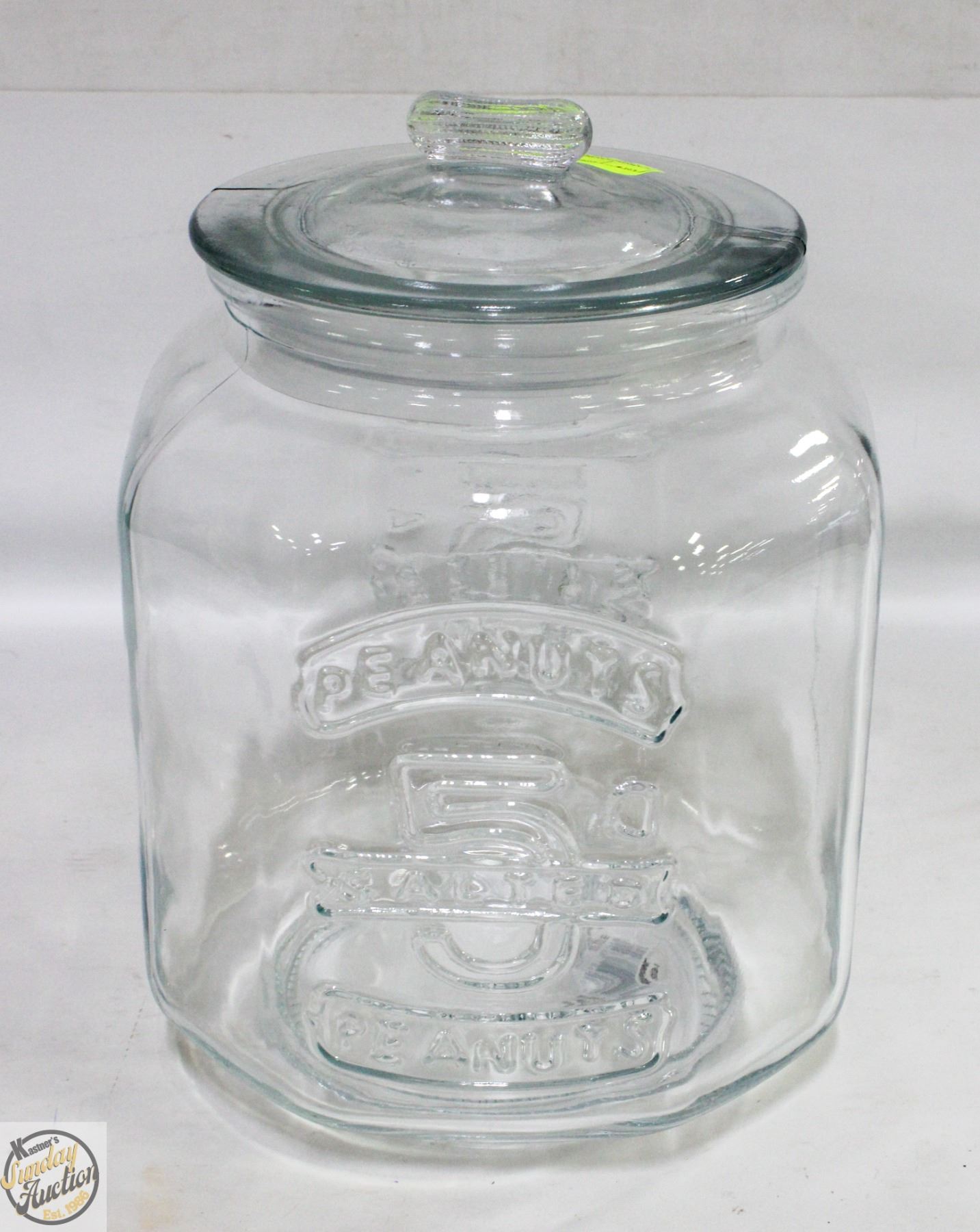 LARGE STORE DISPLAY GLASS PEANUT JAR LIDDED