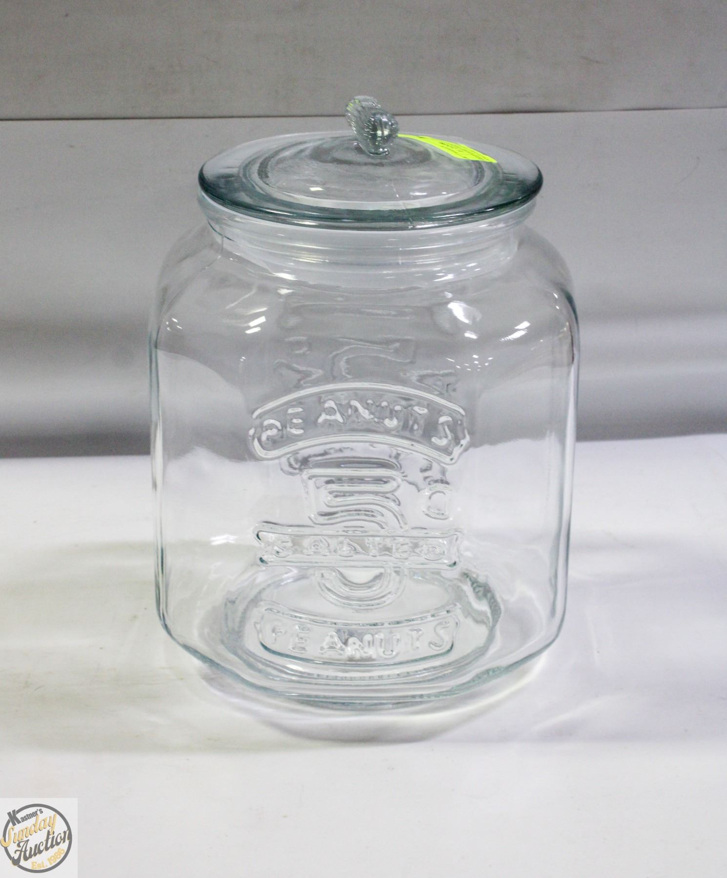 LARGE STORE DISPLAY GLASS PEANUT JAR LIDDED