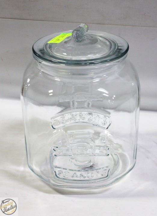 LARGE STORE DISPLAY GLASS PEANUT JAR LIDDED