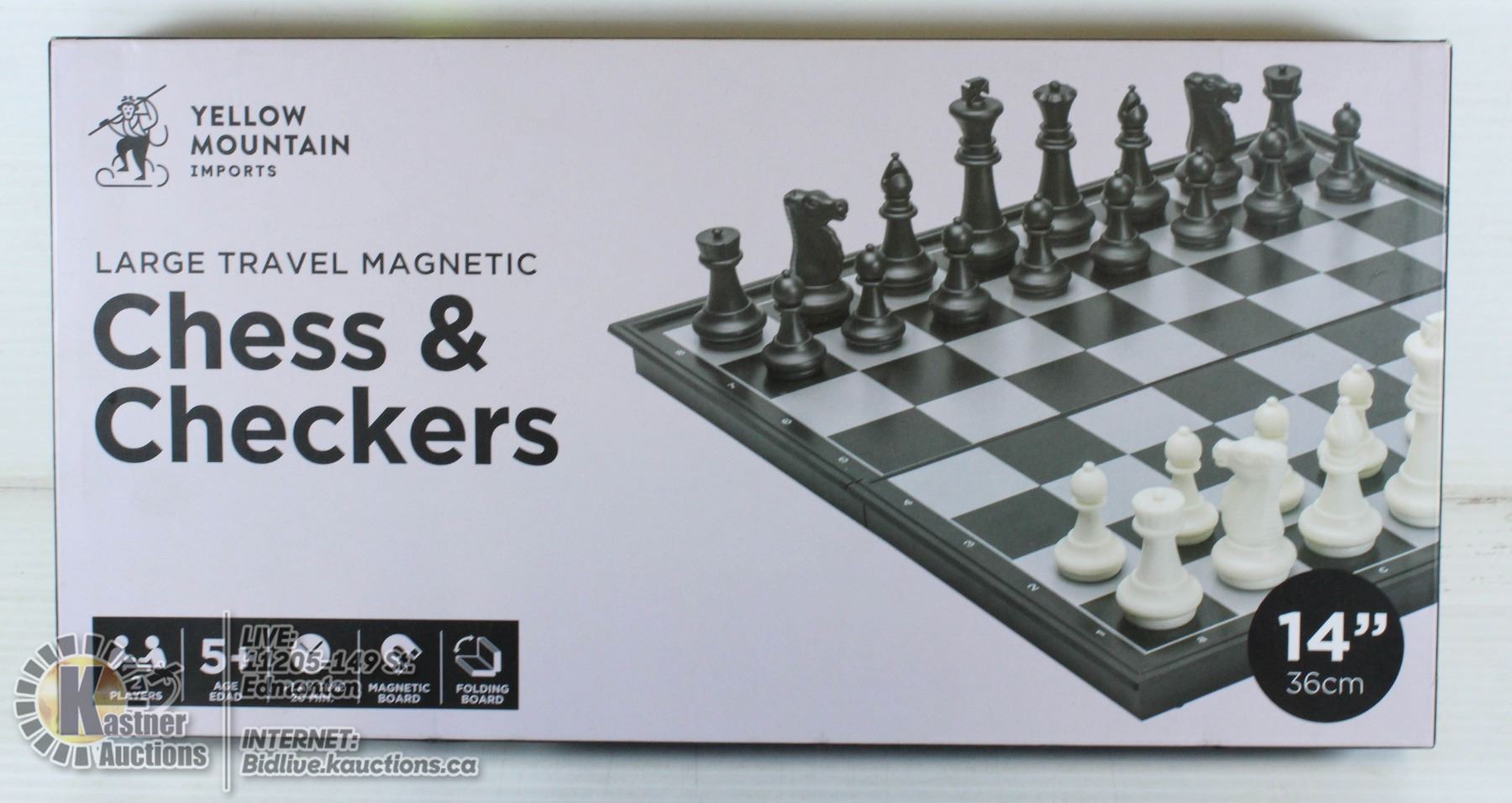 LARGE TRAVEL MAGNETIC CHESS & CHECKERS - 14"