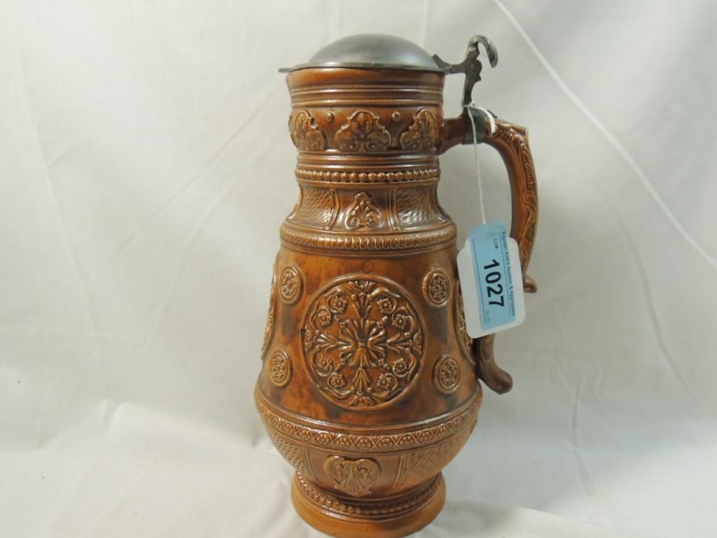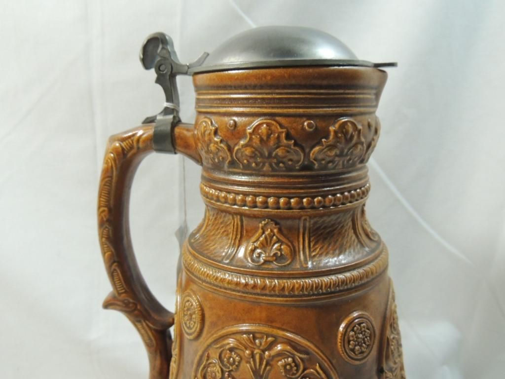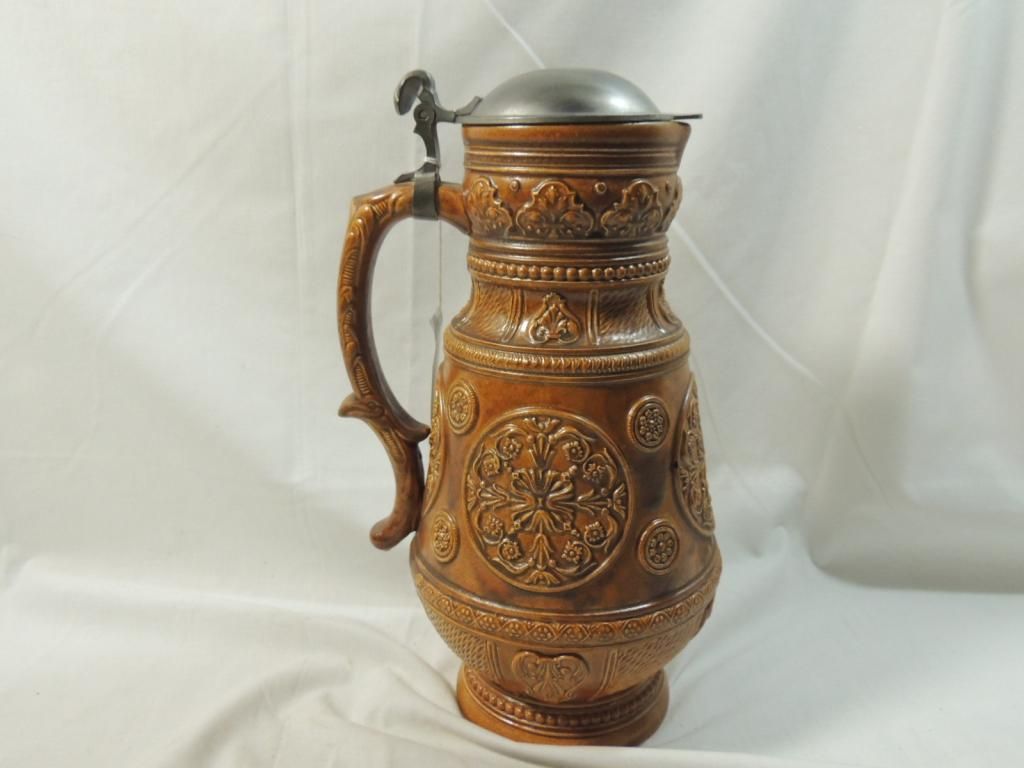 LARGE BROWN DETAILED CERAMIC STEIN. AS SHOWN. SEE PHOTO FOR MORE DETAILS.