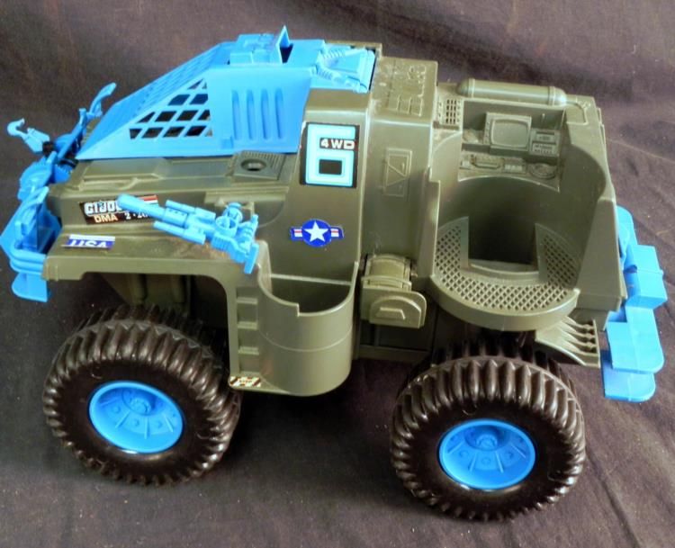LARGE VINTAGE GI JOE BATTLE WAGON & M-LAUNCHER W/GI JOE FIGURE--BATTERY OP-WORKS---GREAT VINTAGE GI JOE MATTLE WAGON AND MISSILE LAUNCHER WITH A GI JOE FIGURE THAT IS REMOVEABLE & SITS INSIDE--BATTERY OPERATED-STILL WORKS FINE--FORWARD & REVERSE--SIZE: 13" LONG--8" HIGH--8" WIDE