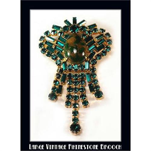 <tr><td>Title:LARGE VINTAGE GREEN RHINESTONE BROOCH CJ-12</td></tr>