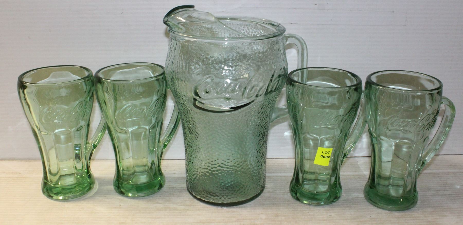 WITH 4 VINTAGE GREEN HANDLED GLASS MUGS