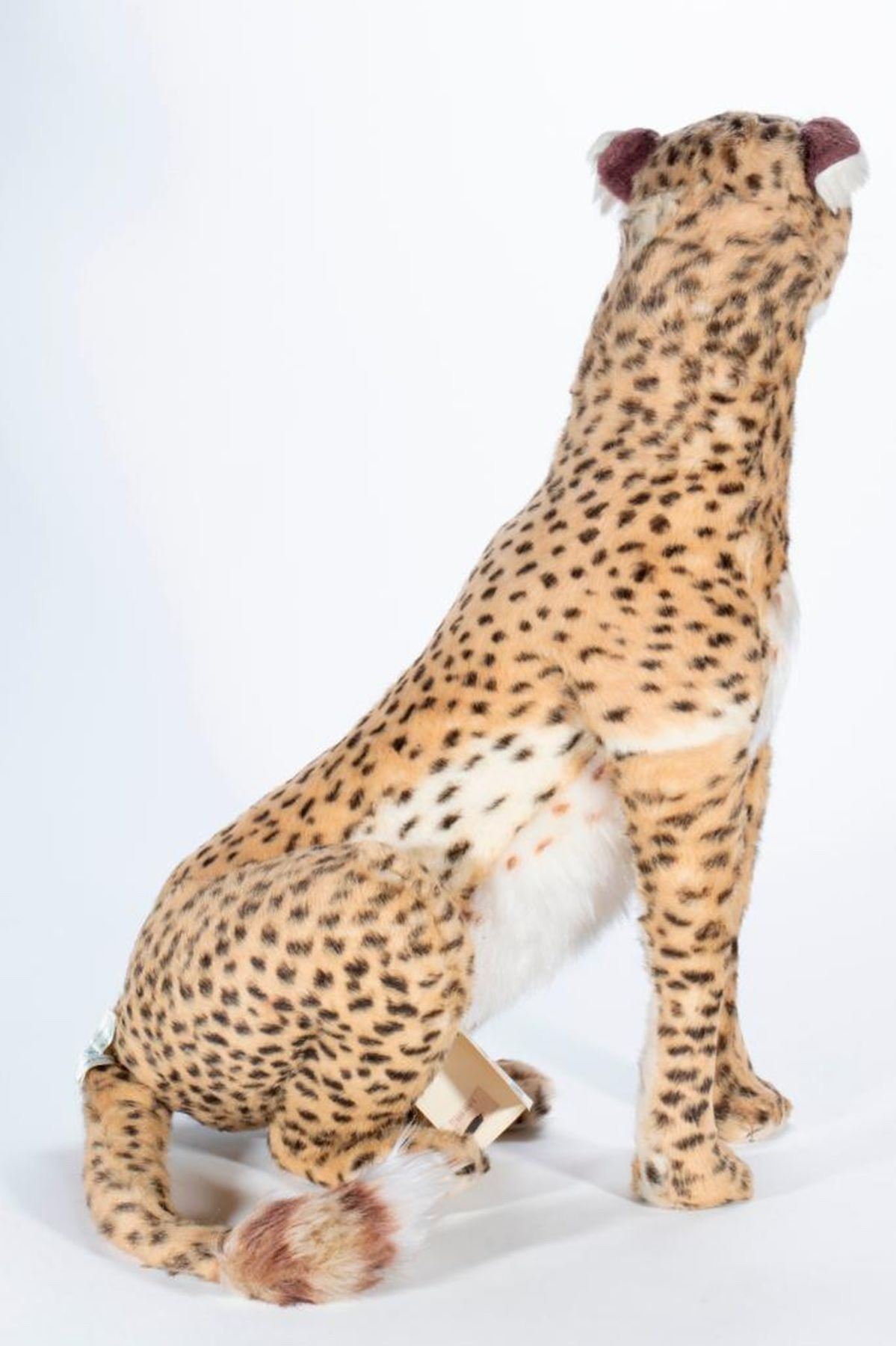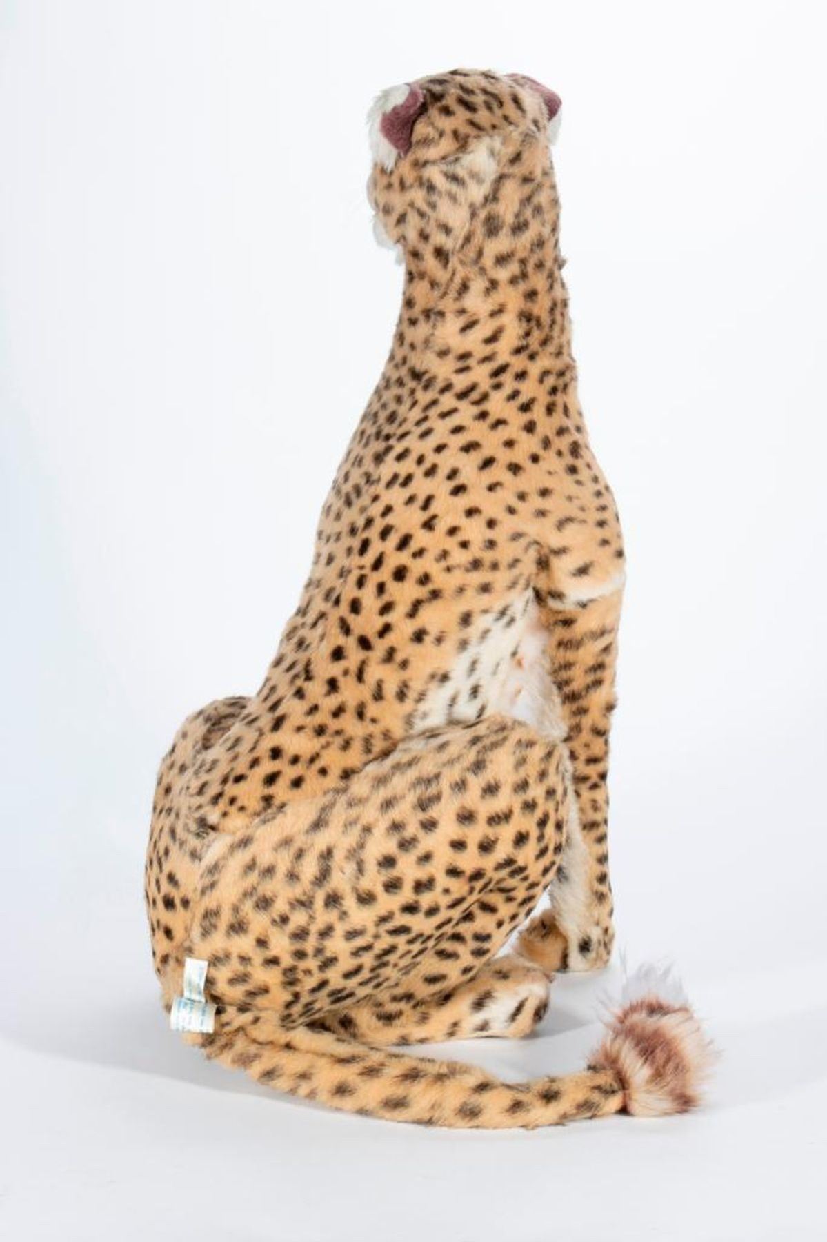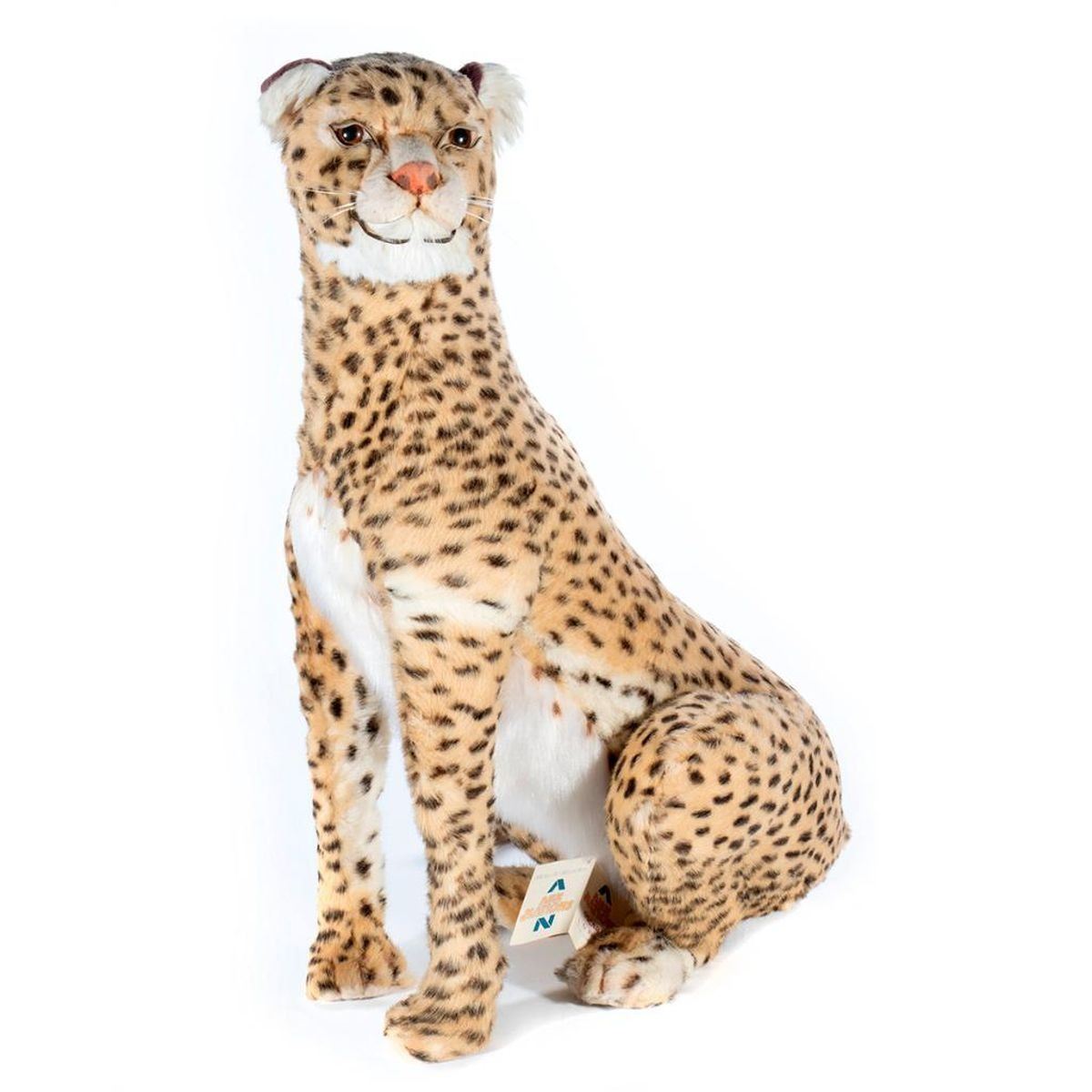 Large scale stuffed animal Cheetah made by Aux Nations France. Has original hang tag and dated 1976. Largest measurement 27 inches.