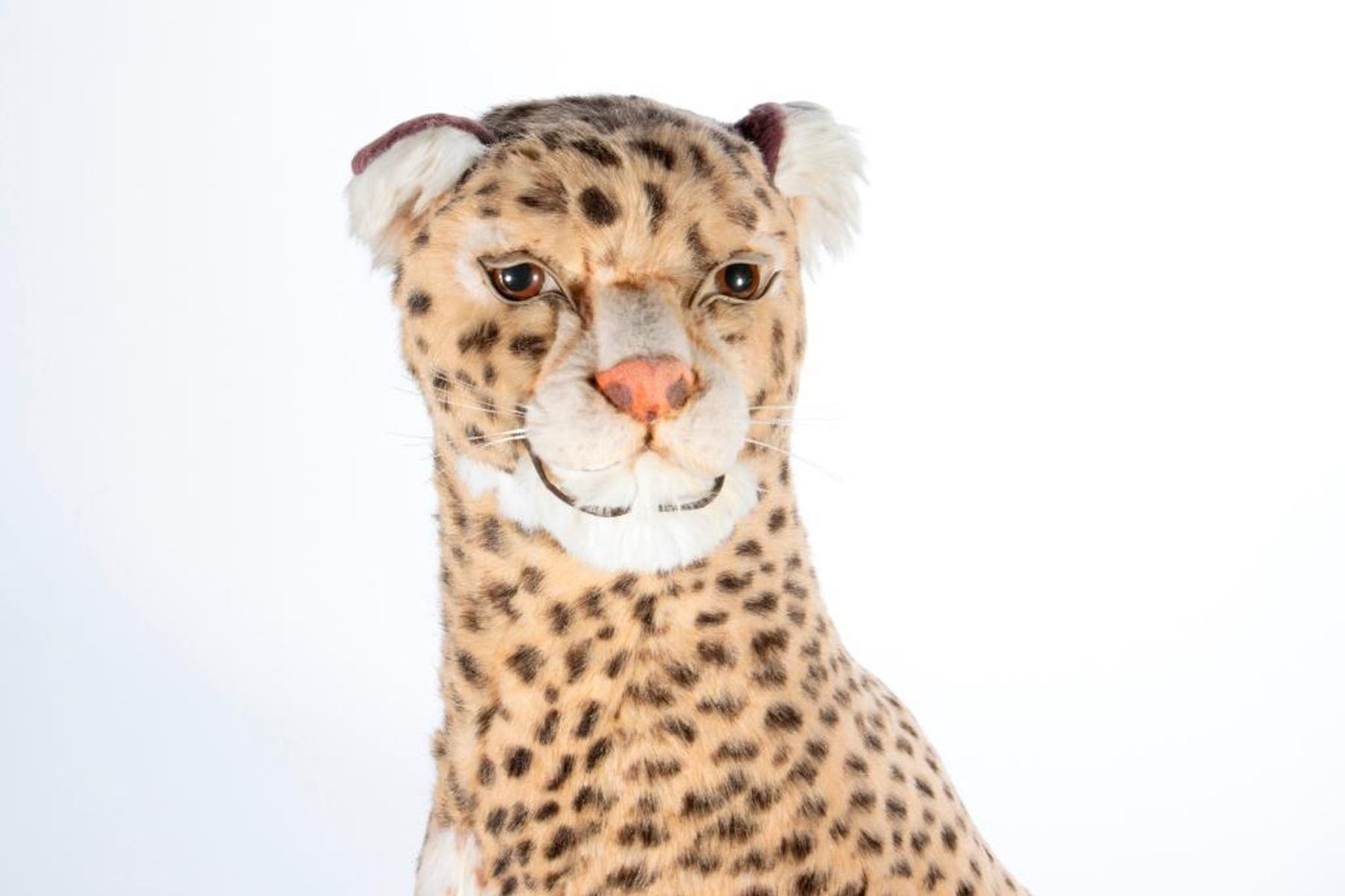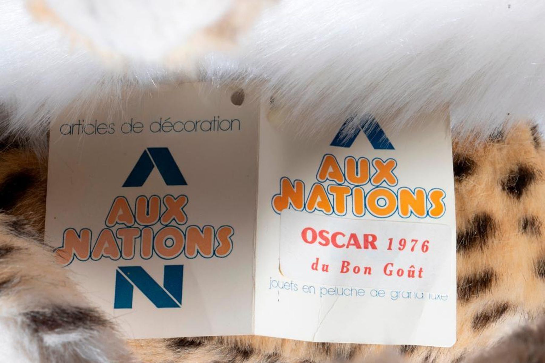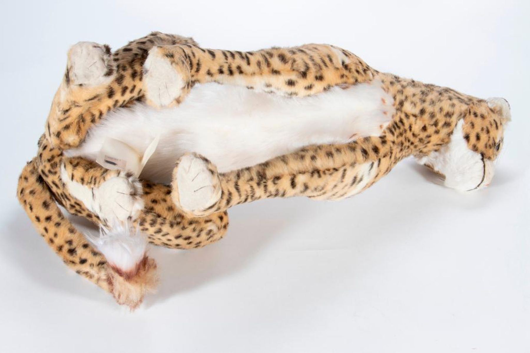 Large scale stuffed animal Cheetah made by Aux Nations France. Has original hang tag and dated 1976. Largest measurement 27 inches.