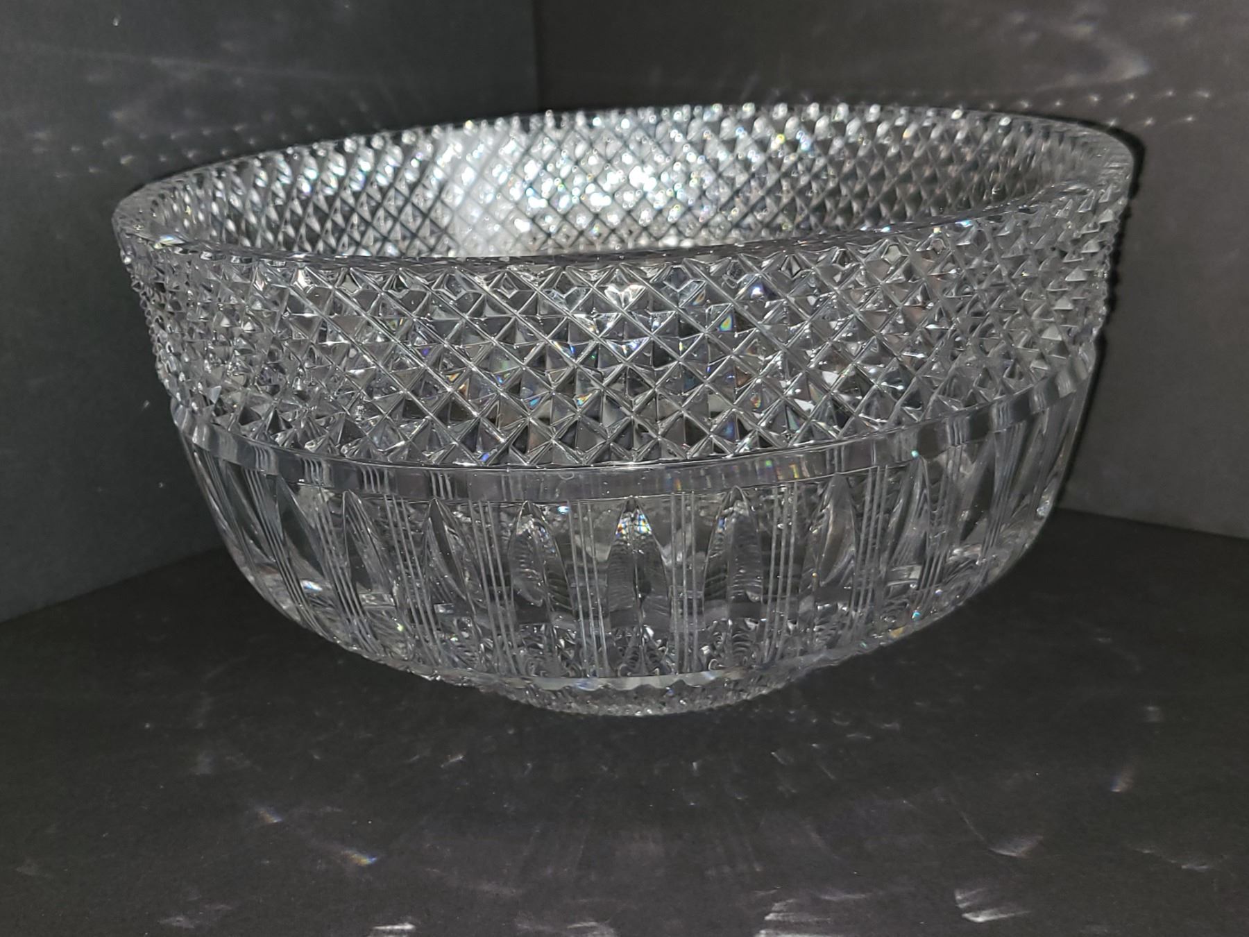 LARGE WEXFORD ANCHOR HOCKING CRYSTAL BOWL. MEASURES 8.75" WIDE 5" DEEP