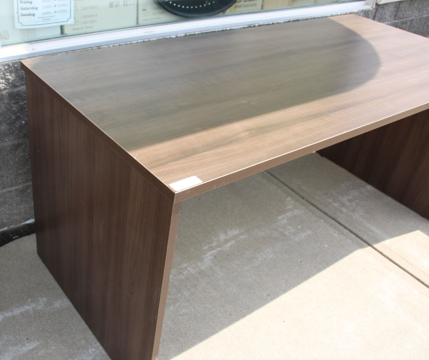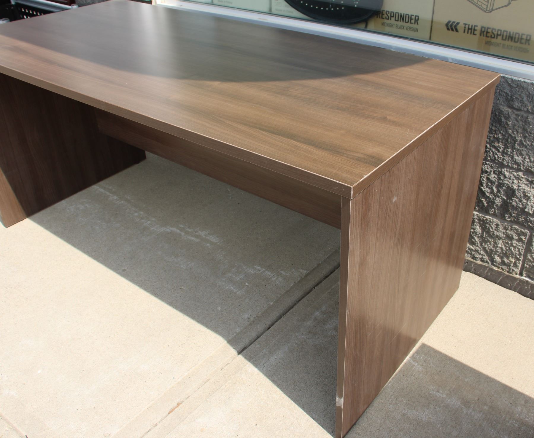 LARGE WOOD TONE OFFICE DESK, GOOD CONDITION