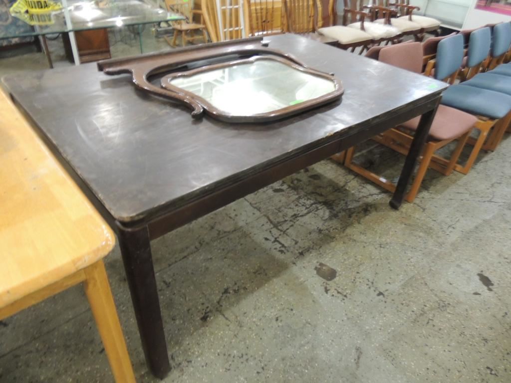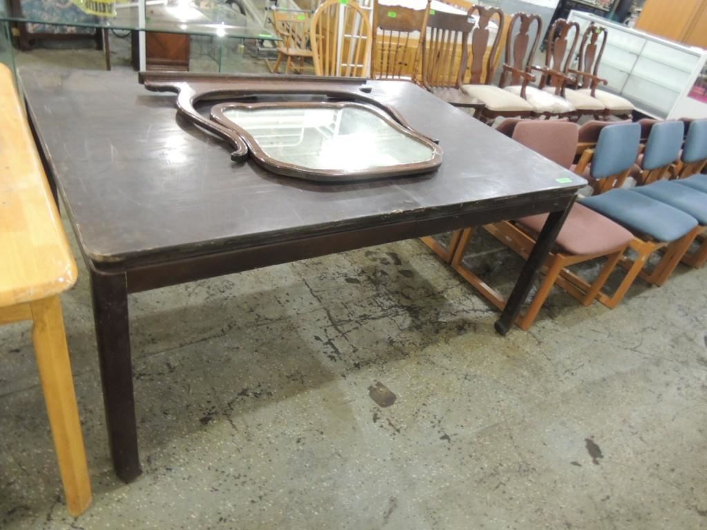 DARK WOOD, WORN, FAMILY DINING TABLE, CRAFT TABLE, GAME TABLE, DECORATIVE, VINTAGE AS SHOWN SEE PHOTO FOR MORE DETAILS.