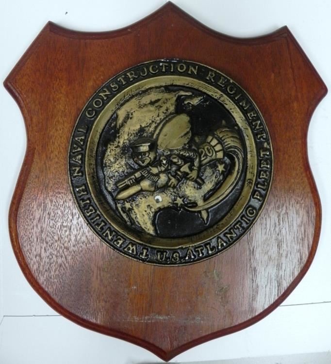 THIS IS A LARGE WOODEN PLAQUE-20TH NAVAL CONSTRUCTION FLEET-US ATLANTIC. THE WOOD PLAQUE WITH PAINTED PLASTER CAST INSIGNIA--10X12".