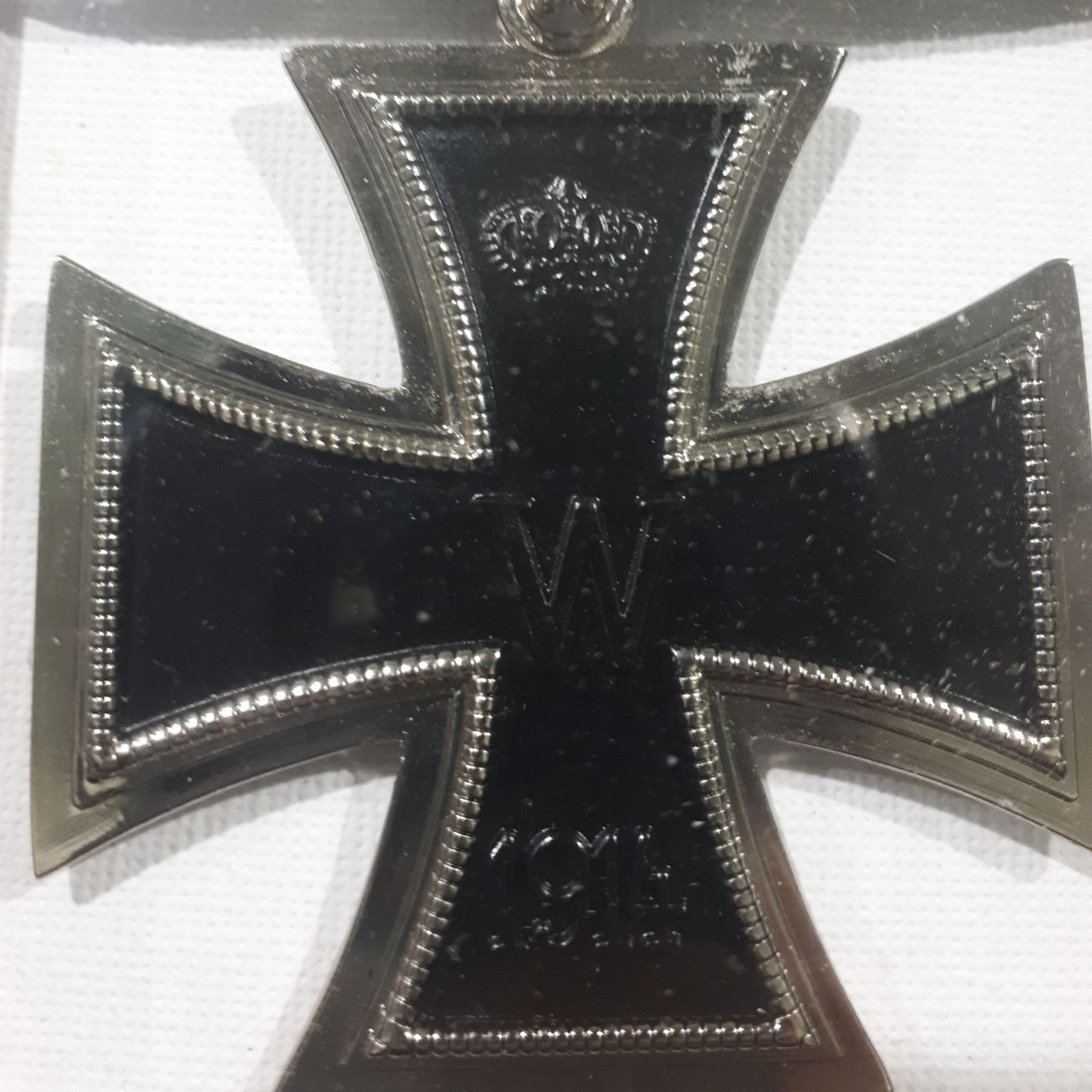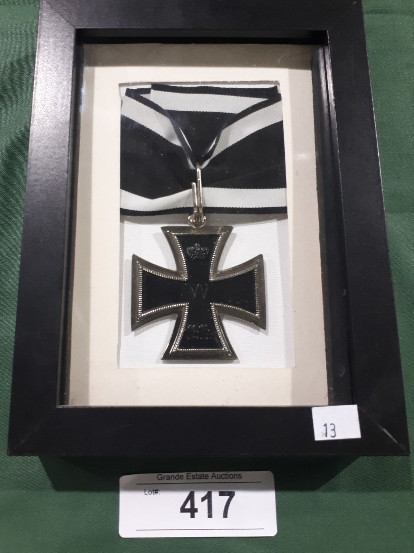 LARGE WWII NAZI GERMAN CROSS MEDAL IN DISPLAY CASE - REPRODUCTION