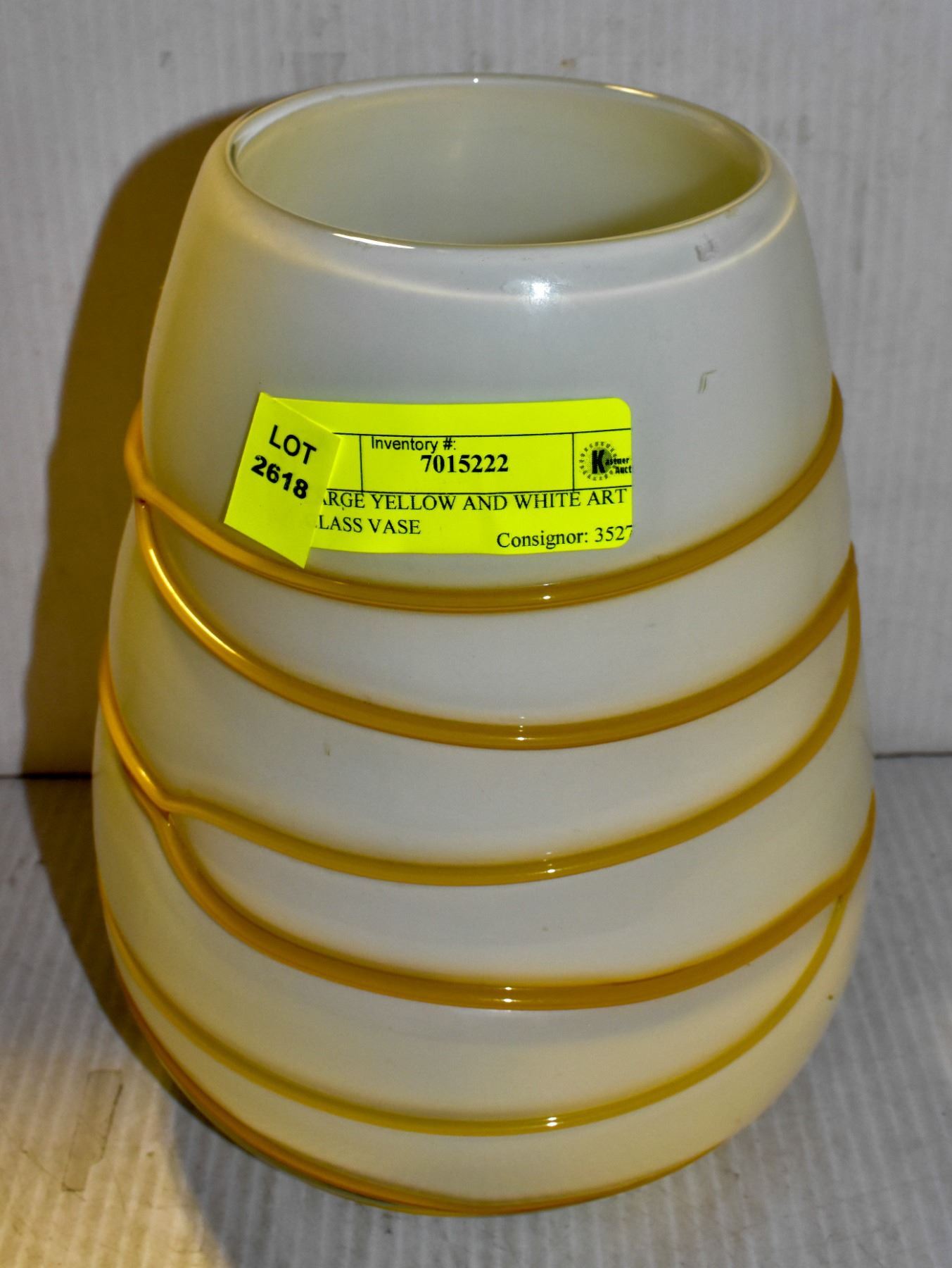 LARGE YELLOW AND WHITE ART GLASS VASE
