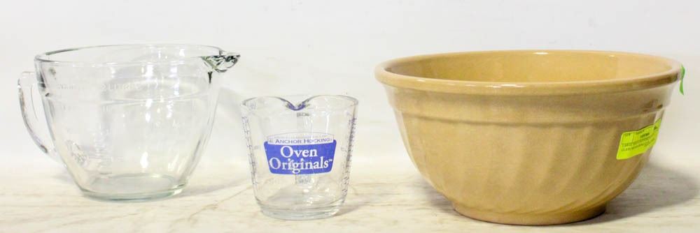LARGE YELLOWSTONE BOWL & GLASS MEASURING CUPS