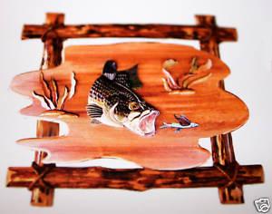 "LARGEMOUTH BASS" - 24X24 - HAND CARVED - HAND STAINED - MADE OF MANY DIFFERENT HIGH QUALITY WOODS - WELL MAINTAINED - QUALITY