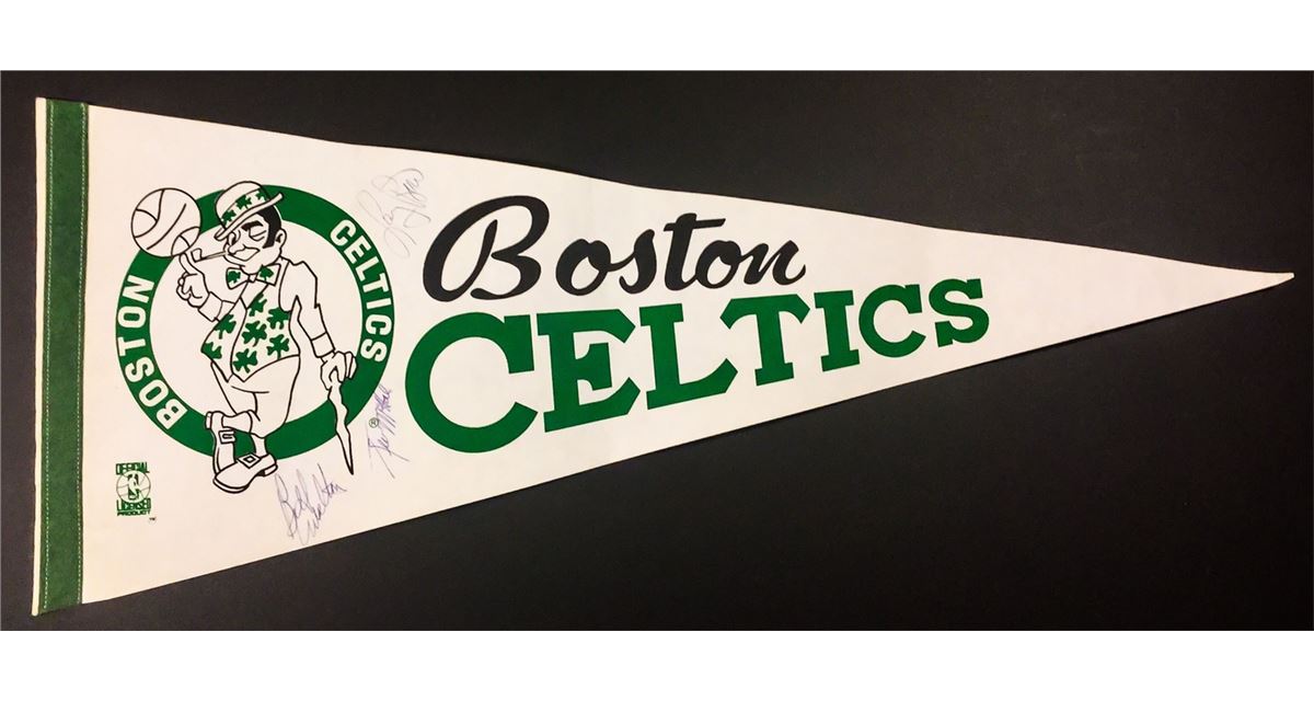 A LARRY BIRD, BILL WALTON & KEVIN MCHALE SIGNED BOSTON CELTICS PENNANT