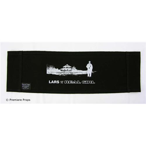 LARS AND THE REAL GIRL - A great item from the film about a man and his doll, this is Ryan Gosling's set chair backrest. The black-cloth backrest has a "Lars and the Real Girl" logo on the back and "LARS" printed on the front. It measures 22" x 7". Don't settle for a mere imitation with an amazing prop taken directly from the set of LARS AND THE REAL GIRL. (LRG2050)