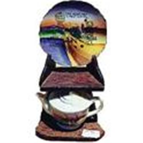 LAS VEGAS MINI TEAPOT & SOUVENIR PLATE -- 1950?s, colorful street scenes, sits on original display stand, set