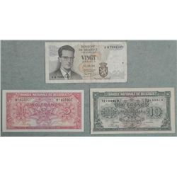 3 Different Early Belgium Paper Currency * 20 Franc10 franc5 franc *