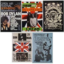 Here are 5 reproductions of original concert posters from some of the greatest 1960's and 1970s bands.Condition: Excellent Size: 12" x 18&q...