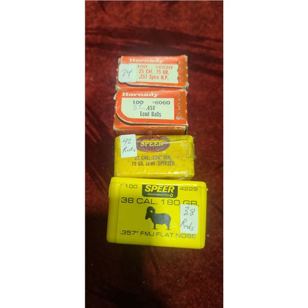 4 BOXES OF PARTIAL ASSORTED BULLETS SEE PHOTO