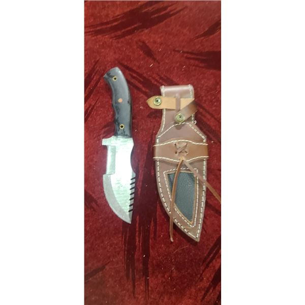NEW DAMASCUS STEEL HUNTING KNIFE WITH LEATHER SHEATH 5" BLADE