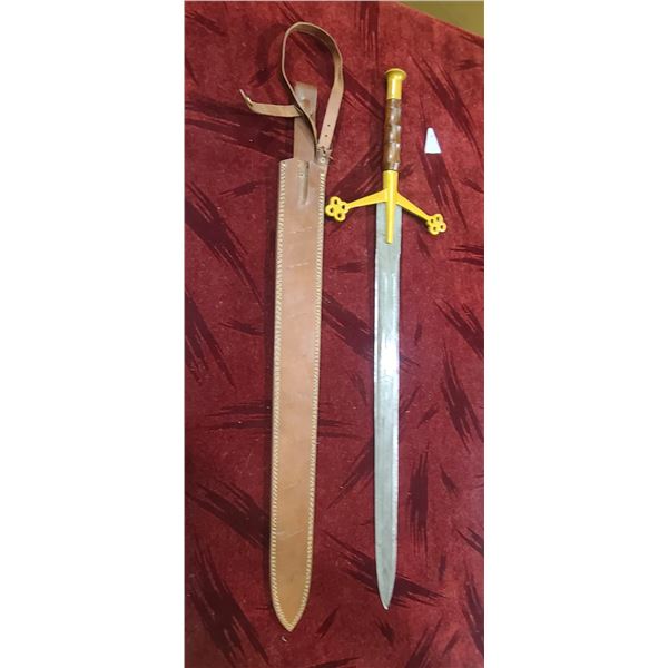 NEW DAMASCUS STEEL 36 INCH SWORD WITH LEATHER SHEATH