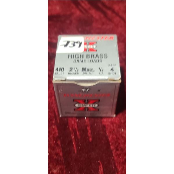 22 SHELLS BOX WINCHESTER 410 2 1/2 INCH # 4 SHOT - YES THE STICKER SAYS 739 LOT 739 AND LOT 740 ARE THE SAME .410 GA AMMUNITION EXCEPT LOT 740 Has