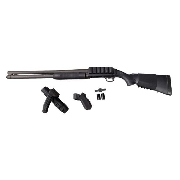 USED MOSSBERG 500 TAC 12GA BLACK PUMP ACTION WITH ACCESSORIES LOCATED IN GRANDE PRAIRIE PICK UP THERE OR HAVE ITEM SHIPPED