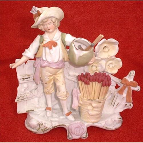 This is a fabulous Victorian bisque cigar and match holder from the late 1800s. The large opening which is a picket fence is the cigar holder. There are two holders for matches, probably one for spent matches. The striker is on the side and it is about 6" tall by 5" wide. The detail in this piece is wonderful. It is in excellent condition with no chips or cracks. I bought this from a person I have been buying alot of pieces from in the last few months. All the items have been stored since the 1940s when his grandmother closed her antique shop in NJ and moved to Florida. It had never been unpacked or rewrapped until he brought it in in the original 1940s newspaper. Everything I have bought has been from the mid 1800s to early 1900s. Most of it mid to late 1800s. There is absolutely no doubt about this rare and wonderful piece.