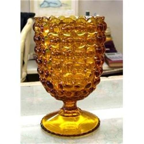 This is a late 1800s Thousand Eye Early American Pattern glass amber glass spooner or celery. It is in excellent condition with no chips or cracks and is 5 1/2" tall and the base is 3". This has the tiny diamond between the eyes which is how you determine the true old thousand eye glass.