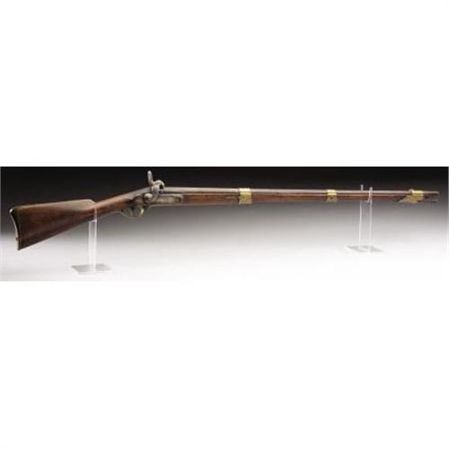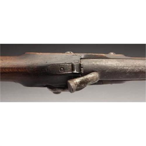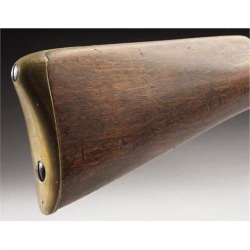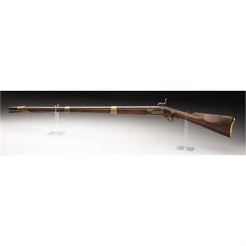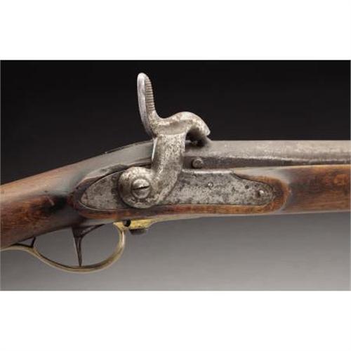 <B>LATE 18TH CENTURY .69 CALIBER SMOOTHBORE MIDDLE EUROPEAN MUSKET WITH UNUSUAL CONVERSION TO PERCUSSION.</B></I> A scarce early musket with a most unusual conversion exemplifying the depths reached by both sides in procuring arms early in the Civil War.<BR><B><BR>Condition:</B></I> Absolutely untouched. 41.25” barrel with bayonet lug on underside. Barrel aged to very nice smooth dark color. Heavy brass blade front sight and V notch at breech. Original ramrod, mechanically perfect. Flat face lock, obviously converted from flint. The barrel conversion was executed by drilling and closing the touchhole using a prominent iron plug with nipple seat forged on the top of the barrel. All brass furniture. Sheet brass bands and side plate, heavy cast brass trigger guard and brass butt plate with long three-tier extension. Front and rear bands held in place with springs, middle band friction fitted. Both swivels missing/ removed. Wood excellent with grain reminiscent of the later Austrian Lorenz rifles, no cracks chips or splits, recessed cheek piece. Numbered 656 on side of breech and on butt plate tang. Several numbers and a crown proof on various parts. <BR><BR><b>Shipping:</b> Requires 3rd Party Shipping (<a target="_blank" href="http://www.heritageauctions.com/common/shipping.php">view shipping information</a>)