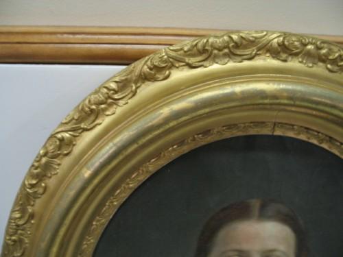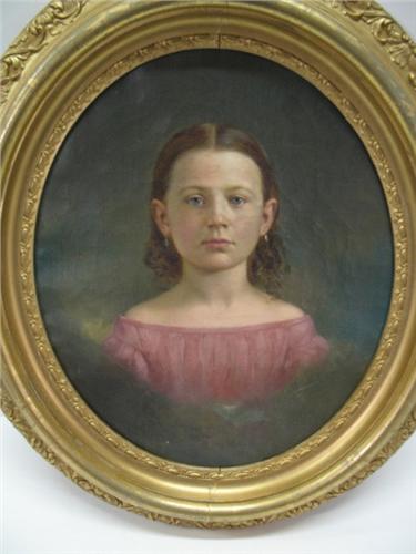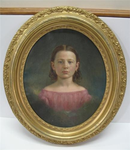 LATE 18TH CENTURY OIL ON CANVAS PAINTING. Depicts young girl. Painting is secured in oval gilt frame. 20” x 22.5”