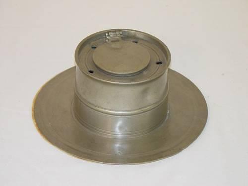 LATE 18TH-EARLY 19TH CENT. PEWTER BISHOP'S HAT INKWELL W/ COVER - DAMAGE & REPAIR TO LID HINGE, DENTS;