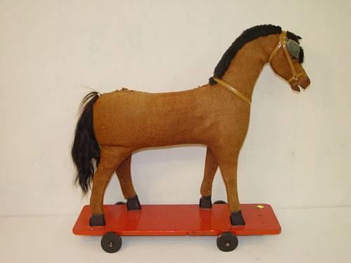 LATE 19TH CENT. 28" HORSE PULL TOY - DAMAGES & LOSSES TO HORSE;