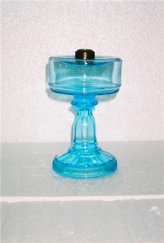 LATE 19TH CENT. 7 1/2" FLUID LAMP W/ CLEAR FONT ON COBALT BASE, MINOR IMPERFECTIONS