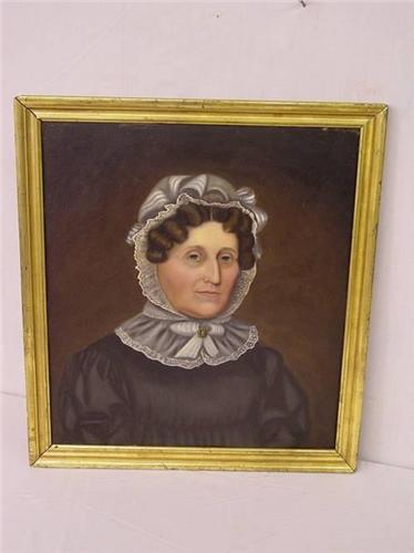 LATE 19TH CENT. OIL ON BOARD OF LADY IN RUFFLED BONNET W/ BLACK DRESS, UNSIGNED (23 1/2" X 21") - SCRATCHES & WEAR;