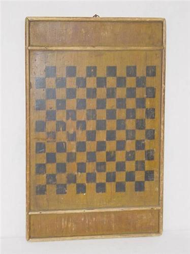 LATE 19TH CENT. PAINTED GAMEBOARD W/ TRAYS (27 1/2" X 17 1/2") - WEAR & PAINT LOSS;