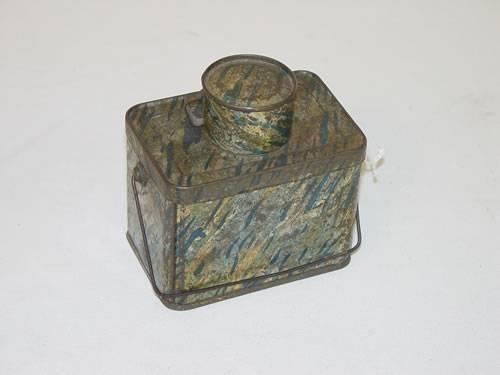 LATE 19TH CENT. SALESMAN'S SAMPLE PAINTED TIN LUNCH PAIL W/ BAIL HANDLE - MINOR PAINT WEAR;