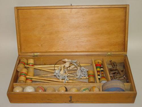 LATE 19TH CENT. TOY TABLE TOP CROQUET SET W/ ORIGINAL BOX