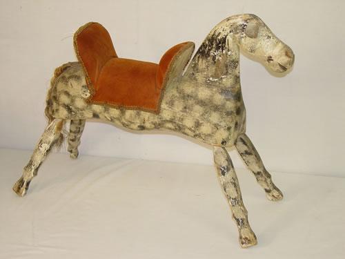 LATE 19TH CENT. WOODEN DAPPLE PAINTED HOBBY HORSE (27" L X 19 1/2" H) - WITHOUT ROCKERS OR BASE, PAINT LOSSES & WEAR
