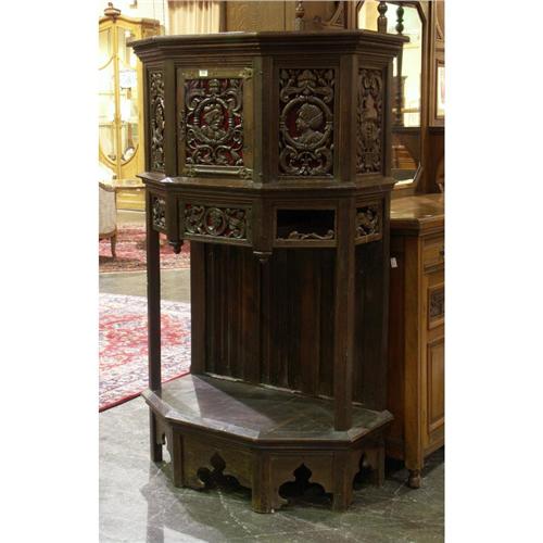 CUPBOARD: Late 19th century French Gothic carved oak court cupboard. 60''h x 19''d x 37''w