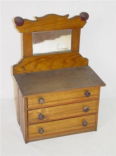 LATE 19TH-EARLY 20TH CENT. DOLLS 3 DRAWER CHEST W/ MIRROR IN LIGHT FINISH (14" H X 10" L X 6" W) - IMPERFECTIONS