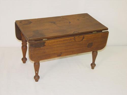 LATE 19TH-EARLY 20TH CENT. DOLLS DROPLEAF TABLE W/ TURNED LEGS & ROUNDED LEAVES (14 1/2" L X 8 1/2" H) - STAINS & IMPERFECTIONS