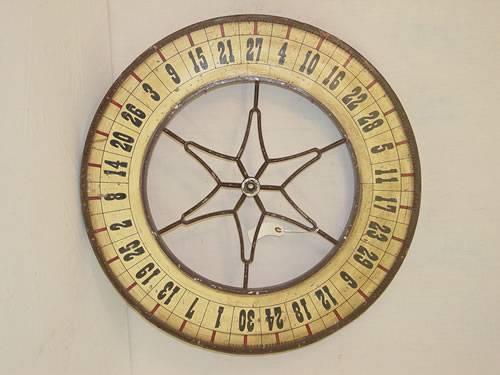 LATE 19TH-EARLY 20TH CENT. PAINTED 25" CARNIVAL GAME WHEEL - PAINT WEAR & LOSSES;
