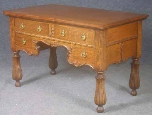 LATE VICTORIAN CARVED OAK DESK top: 27"x47", height:30"