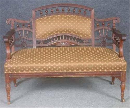 LATE VICTORIAN CHERRY STICK AND BALL SETTEE height: 32", width: 43 1/2"