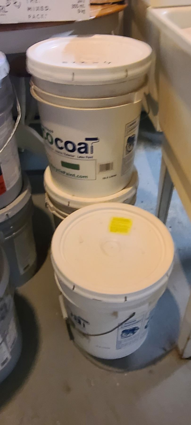 LATEX PAINT 5-GAL. (x4) MATCHING COLOUR: GREEN - ALL FULL!